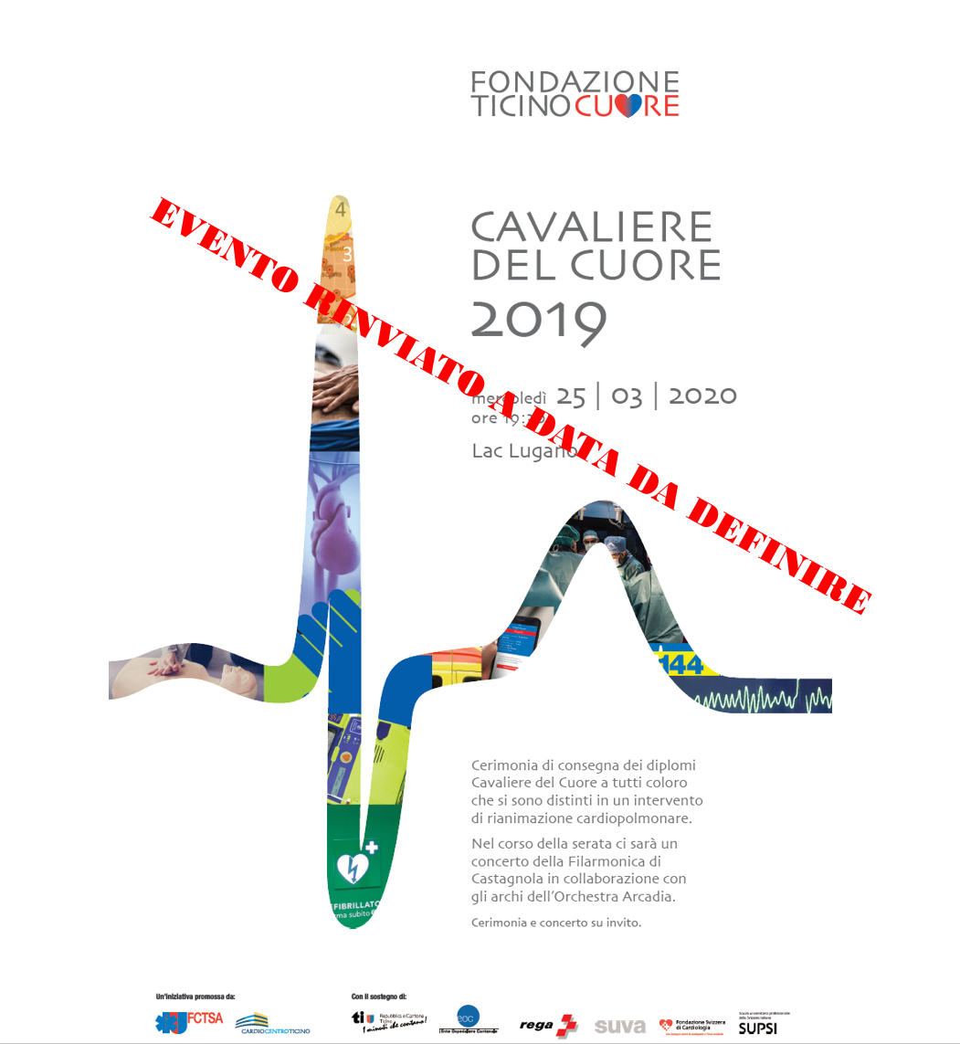 Informiamo che, a seguito della diffusione delle infezioni da Coronavirus, il Consiglio di Fondazione Ticino Cuore ha deciso che l’evento Cavaliere del Cuore, previsto per il prossimo 25 marzo 2020 alle ore 19.30 al LAC di Lugano, é stato rinviato a data da definire.